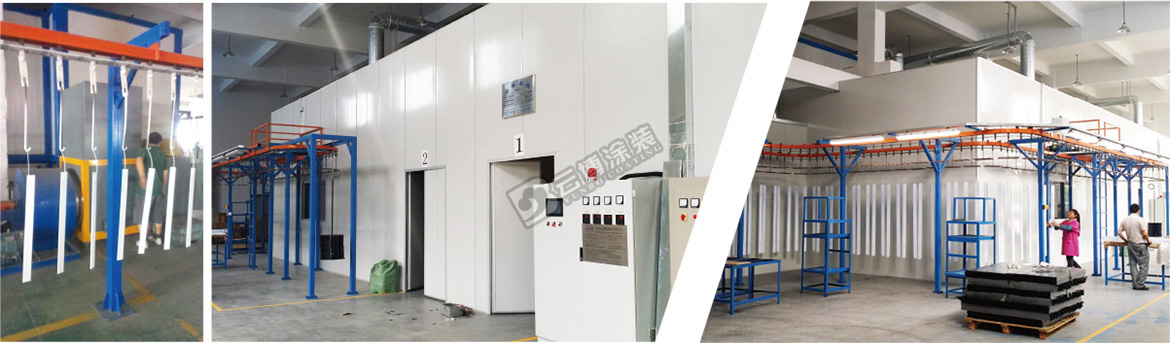 This coating line for the lamp of the automatic coating line, the use of environmentally friendly pre-treatment process, reciprocating machine automatic spraying, oversized touch operation panel, suitable for all kinds of lamps and pieces of sheet metal spraying.
